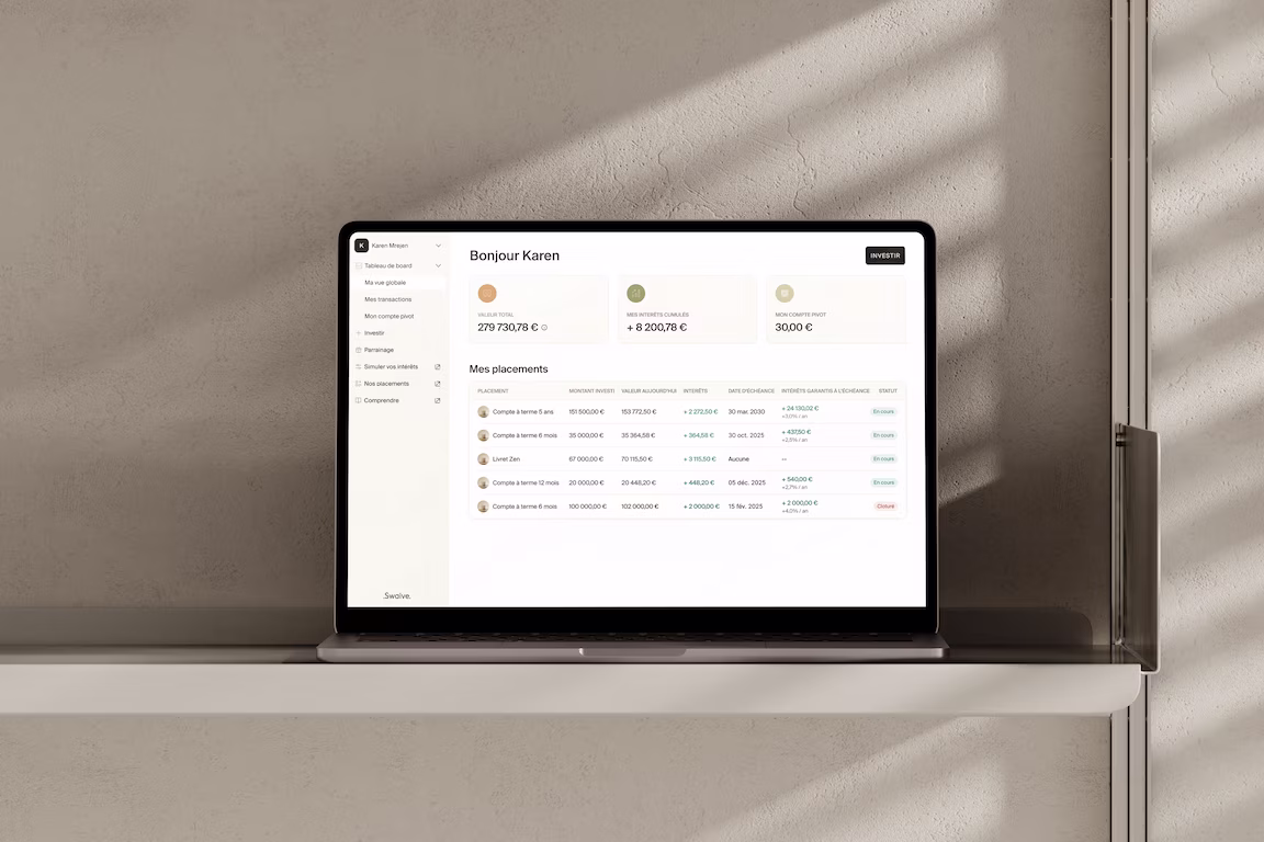 Ouvrez votre livret Swaive en moins de 10 minutes et suivez vos intérêts en temps réel sur la plateforme.